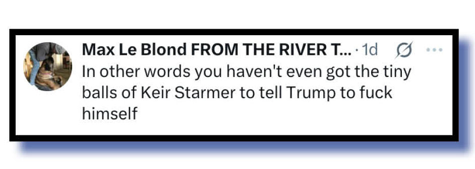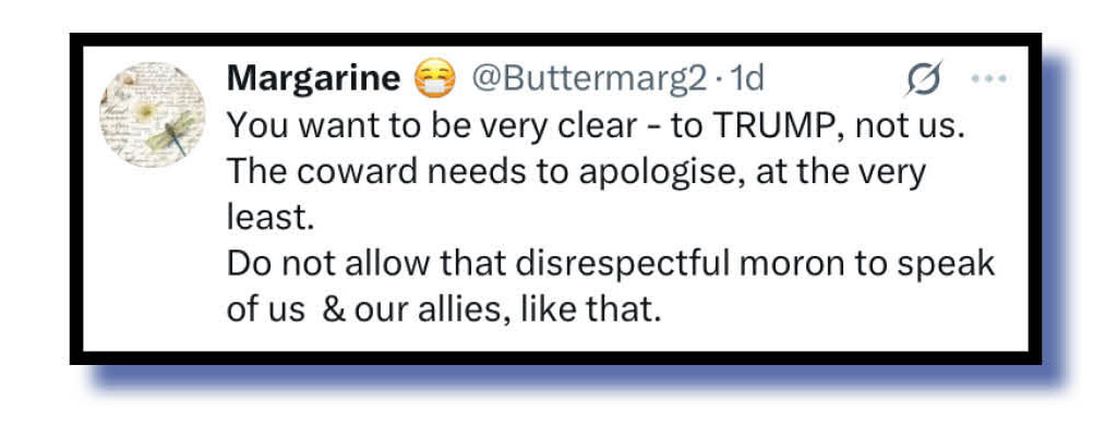 Also telling Marles where he should have sent his clarifying message to, if he wasn’t prepared to shove it up his arse (we’re paraphrasing a bit here) were Margarine and ShazH.