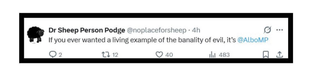 and in a very short virtual dump, Dr Sheep Person Podge was in full agreement with The Cockatoo as to what he thinks of Albanese.