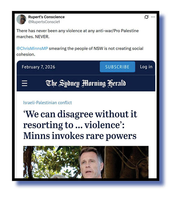 Our judges opted to highlight them for their brevity and power, but the likes of Rupert’s Conscience took longer to effectively say the same thing – that Minns doesn’t mind a porky or two to besmirch a group of Australians he has no time for – and Peter Murphy helped Minns out with a potted history of the Zionism he so obviously adores.