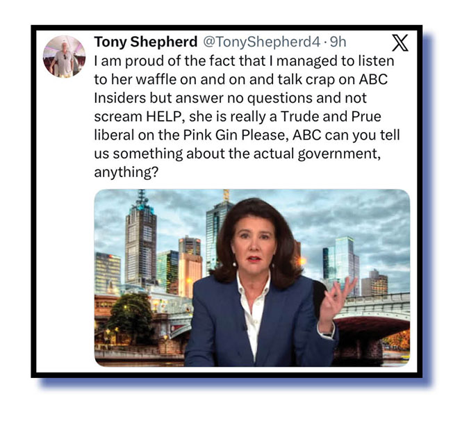 That’s probably a safe bet seeing Angus Taylor and Jane Hume played vital central roles at the 2025 election in making sure the Liberal brand stinks to high heaven in the nation’s capital cities especially.
