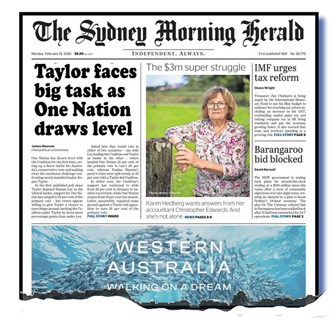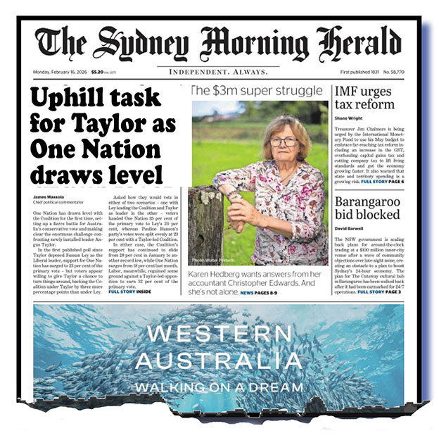 Our compilers are old enough and smelly enough to know what the word lifeline means. If there’s a lifeline in today’s SMH splash for new Opposition Leader Angus Taylor, it’s one made of barbed wire dipped in oil, offered one of our compilers.