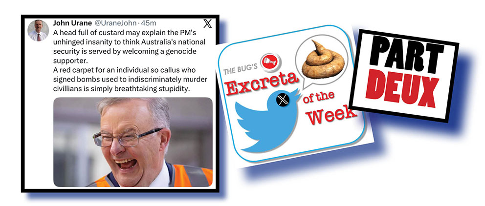 Today we return to the ongoing virtal shitstorm that has settled above the head of Prime Minister Anthony Albanese over his recklessly stupid state-visit invitation to the vile genocist (if that’s the word?) Israeli President Isaac “Have I got a signed bomb to drop on you to celebrate the current ceasefire!” Herzog.