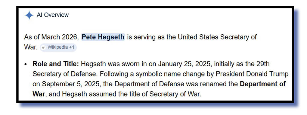 And so we come now today’s topic and we think you’ll agree it’s in the right place – the decision by the US in September last year to change the name of the Department of Defense to the Department of War, and naturally enough, the Secretary of Defense to the Secretary of War.