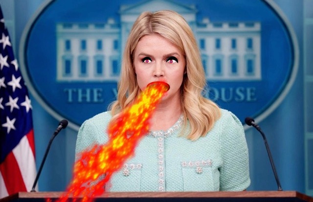 Presidential press secretary, Karoline Leavitt, (below) told White House reporters that President Trump had insisted on attending Mr Mueller’s funeral but knows full well he will be “treated very badly” by the Mueller family when he does.