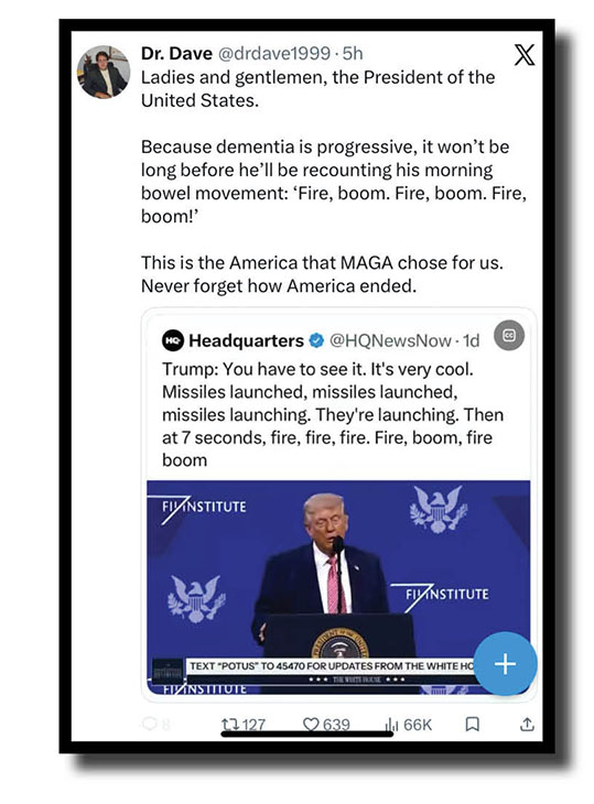 On reflection, we’ve already done enough damage by alluding to The Orange Oaf right at the beginning so here’s a solid outpouring of virtual poo from Morgan J. Freeman, Home of the Brave, Ed Krassenstein, Dr Dave, Not Your Average Liberal and Furkan Gozukara.