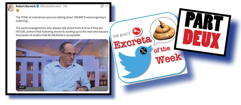 The compilers of this popular Bug column are always concerned if our reader might desert us if we spend too much time – any time, really – on the world’s most hated man. Isn’t it amazing how you know to whom we refer?