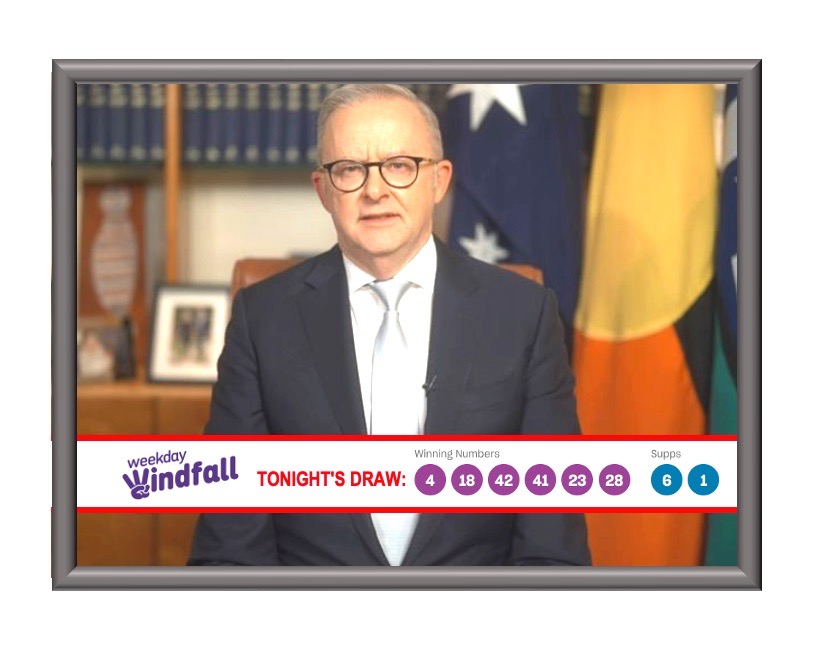 “That’s why he decided he should take a few moments in his speech to announce Wednesday’s Gold Lotto numbers. (main picture)