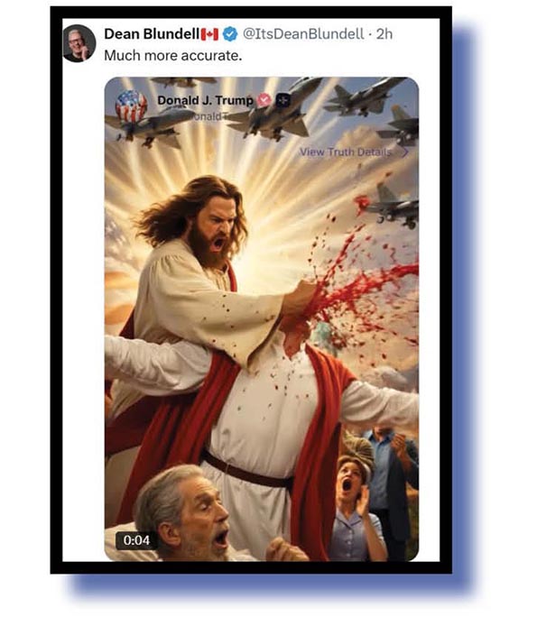 All good stuff but as usual the memes could easily have caught the judges’ eyes and the one from Dean Blundell showing the real Jesus knocking Diaper Don’s head clean orff, as Clint Eastwood would say, was a ripper!