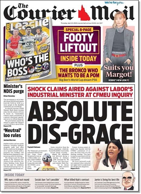 The Courier‘s yarn involved allegations made against former state Labor Party industrial relations minister Grace Grace who was accused in evidence given to an inquiry into those very naughty boys at the CFMEU of doing the union’s bidding.