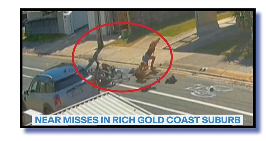 The Today show on Nine a few days back had a yarn of some traffic accidents on a “rich” Gold Coast street. Reporter Mia Glover used the same story on Nine News Queensland that night.