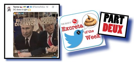 This second look at The Bug’s Xcrements-of-the-Week concentrates once more on the antics of Donald J. Trump. Firstly, […]
